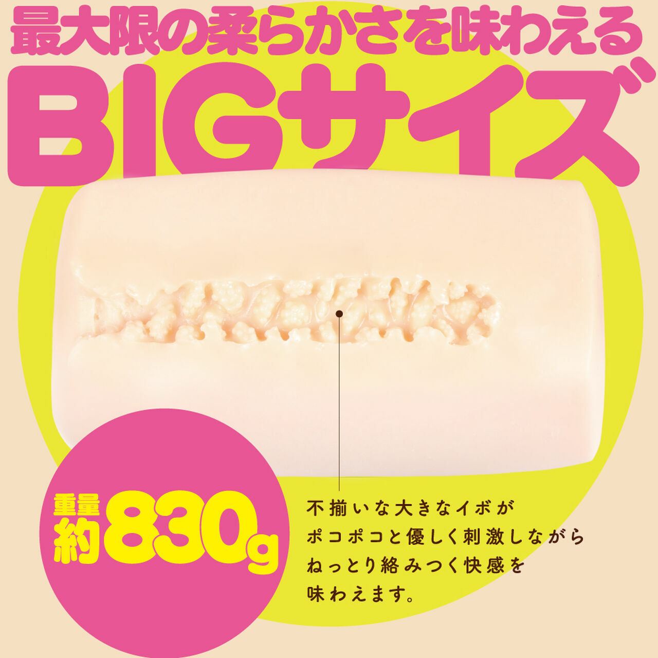 有著從手中溢出的柔軟感和830克的大尺寸,將能夠創造出超出您想像的未知感覺,並獲得比預期更多的快感。