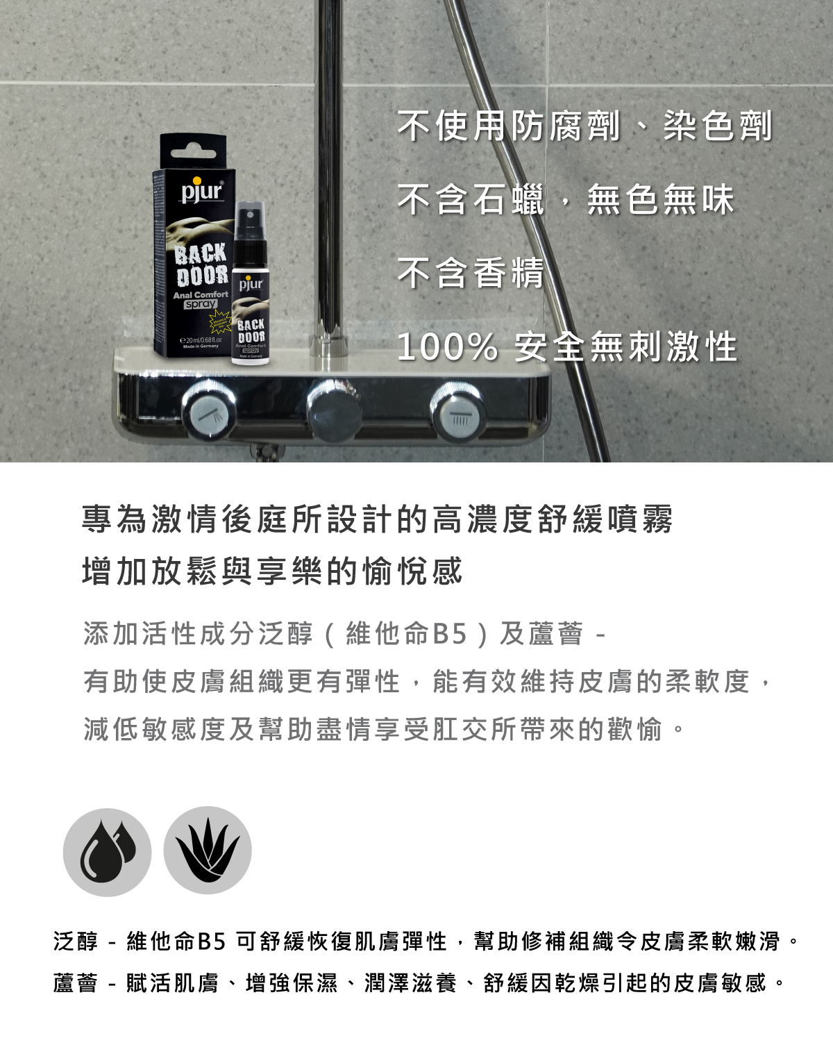 高濃度配方添加優質泛醇及蘆薈